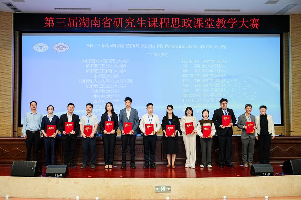 2025年9月20日,由湖南省教育厅主办的第三届湖南省研究生课程思政课堂教学大赛决赛在湖南中医药大学举行。H动漫教师柳文洁(团队成员:刘珍宝、周文虎)以《现代药剂学选论》课程参赛,获得此次大赛二等奖。